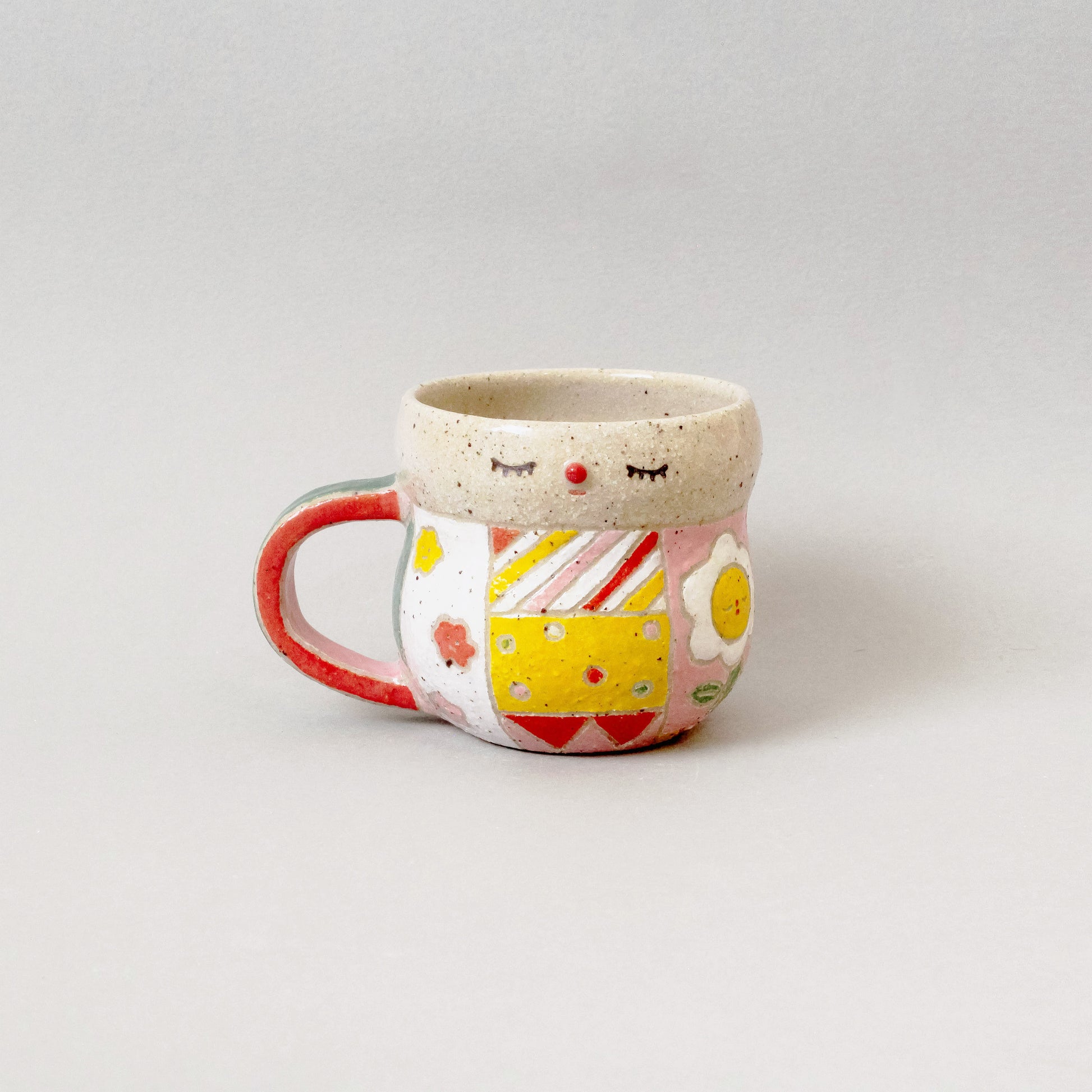 This Harvest cup is thrown with homemade speckled clay, carved and painted with underglaze and glazed with food-safe clear glaze.