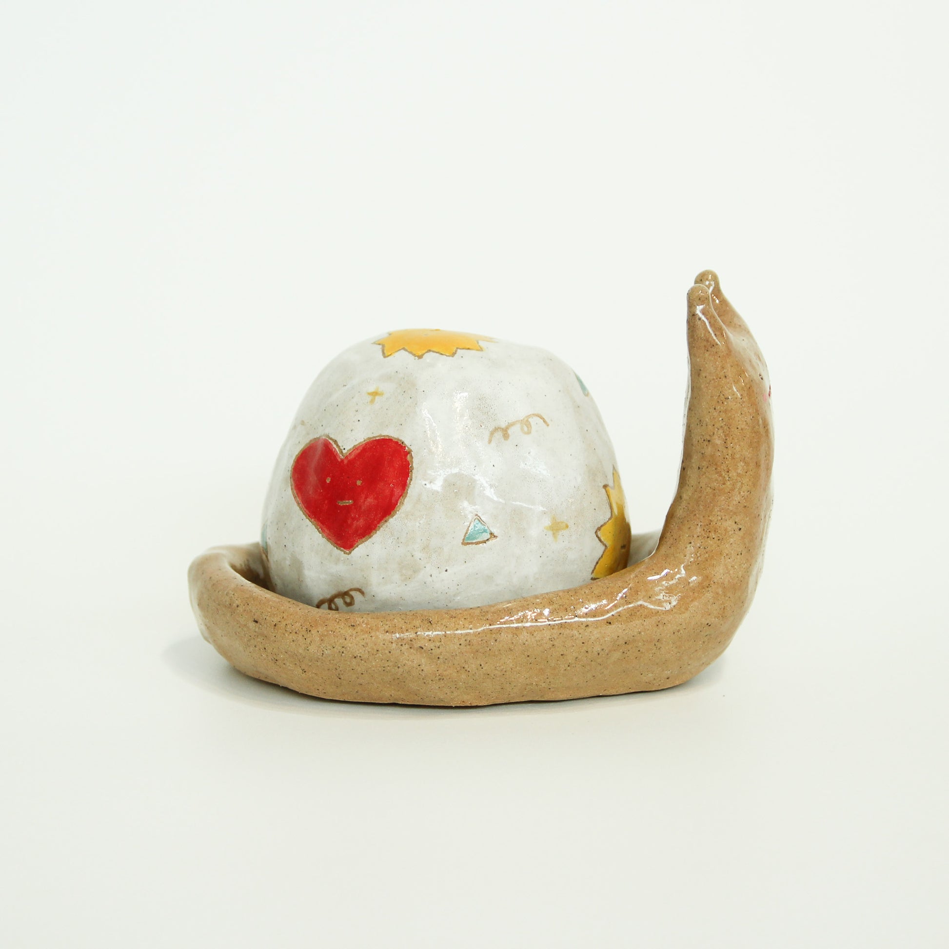 This slow and steady friend carries more than just his shell—he’s got room for your small treasures, too. The snail’s body and shell are separate pieces, making him a little trinket box full of character and charm.